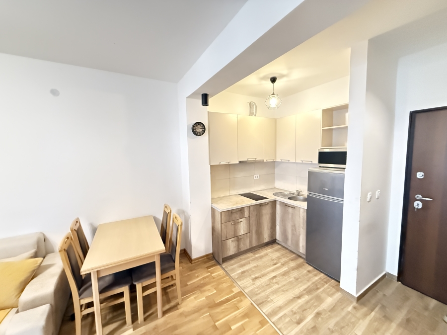 Prodaje se potpuno namjesten jednosoban stan smjesten u novijoj zgradi iza Eko pumpe na glavnom bulevaru u Budvi.
